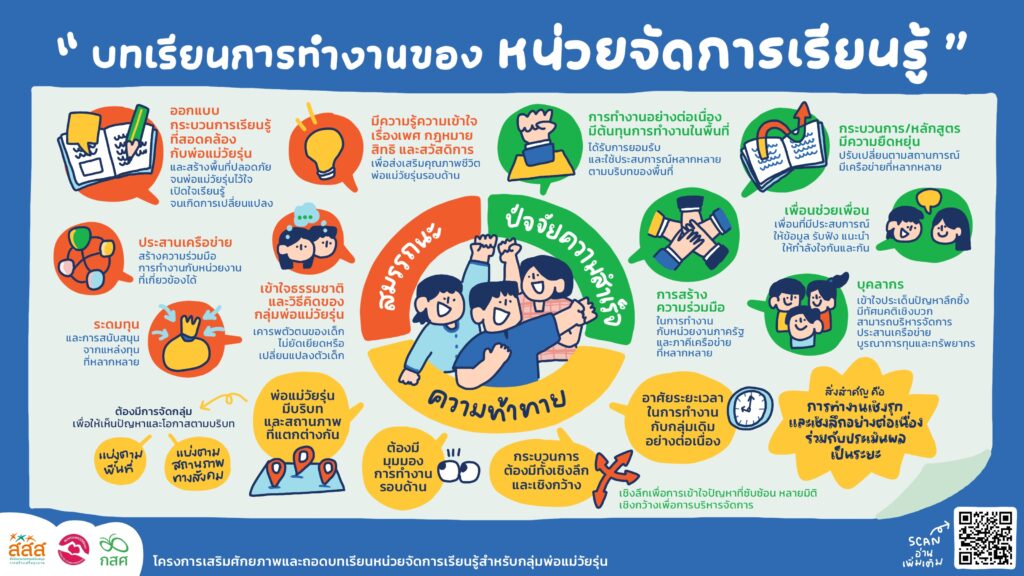 และผลจากการเข้าร่วมโครงการฯ ทำให้ได้ บทเรียนการทำงานของหน่วยจัดการเรียนรู้ 3 เรื่องสำคัญ ประกอบด้วย